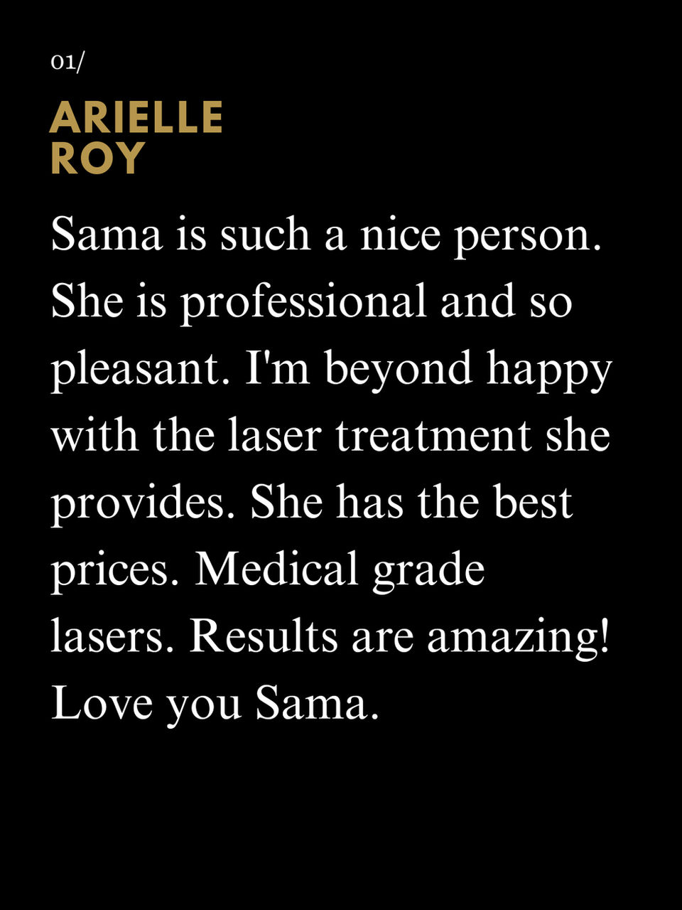 At Sama Skincare & Laser Treatment, we are committed to continuous learning and staying at the forefront of skincare science. With over 20 years of experience in the skin cosmetics industry, our passion for growth has never faded. We consistently pursue the latest education, innovations, and technology to ensure our clients receive the most effective treatments using the newest, state-of-the-art machines. Every service we offer is backed by deep expertise and designed to enhance your skin’s health and radiance. Trust us to bring you cutting-edge skincare solutions—because your beauty deserves the best.